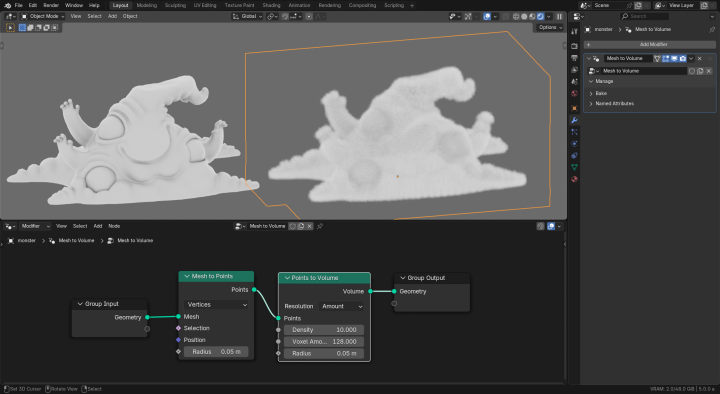 ジオメトリノードを使用したボリュームからメッシュへの変換